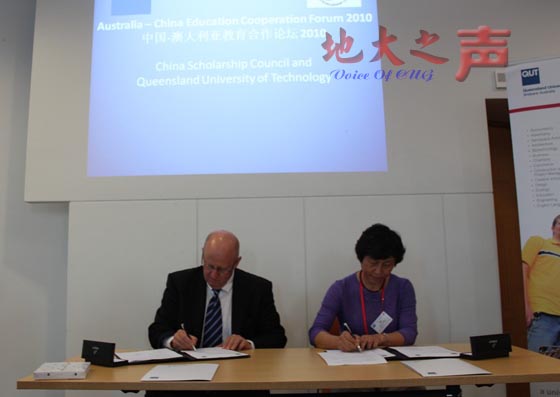 五、校黨委副書記朱勤文代表學校與澳大利亞昆士蘭科技大學副校長Mr. Scott Sheppard簽訂校際國際合作協議,并擬就學生互換、學術交流等雙方感興趣的領域開展合作與交流。(杜海坤攝)