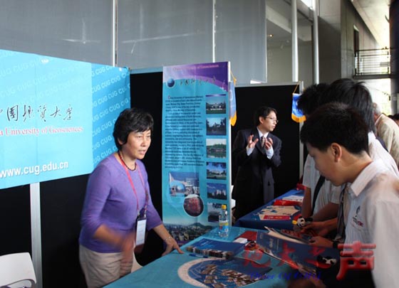 三、朱勤文副書記和我校工作人員在展臺前接受咨詢 。
