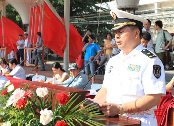 七、海軍工程大學(xué)訓(xùn)練部部長高敬東少將做2010級地大新生軍訓(xùn)總結(jié)講話。