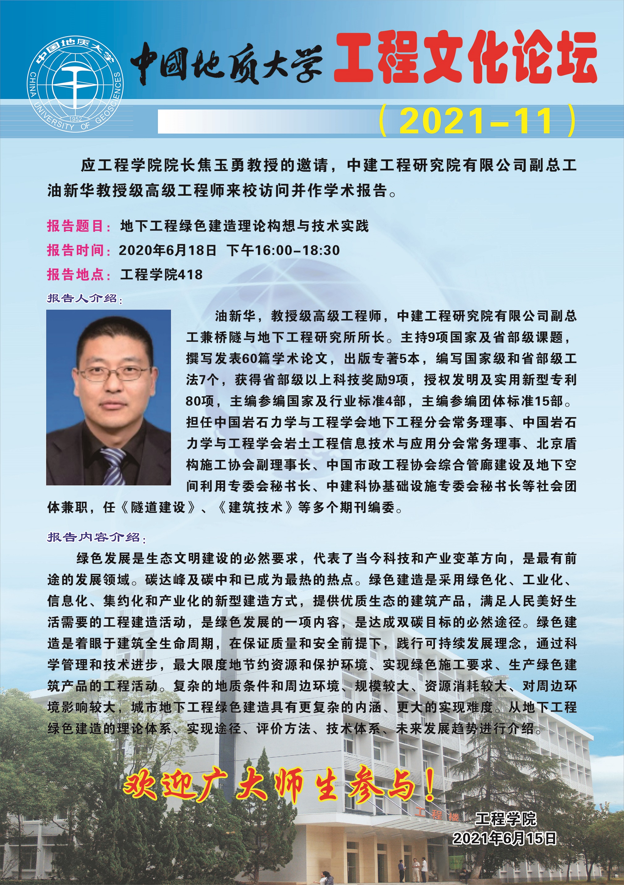 【6月18日】工程文化論壇:中建工程研究院有限公司副總工油新華教授級總工程師學術報告