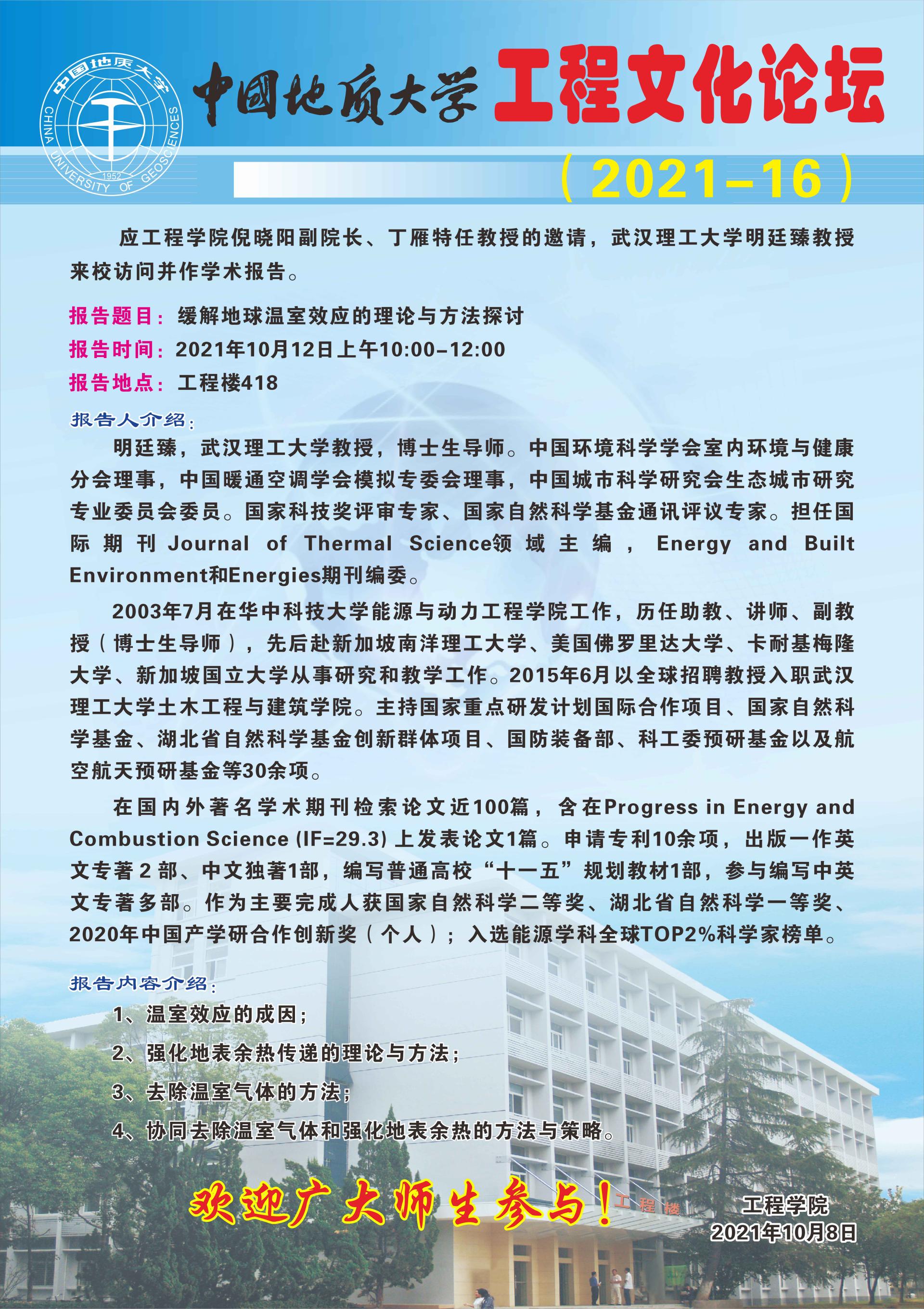 【10月12日】工程文化論壇:武漢理工大學明廷臻教授學術報告