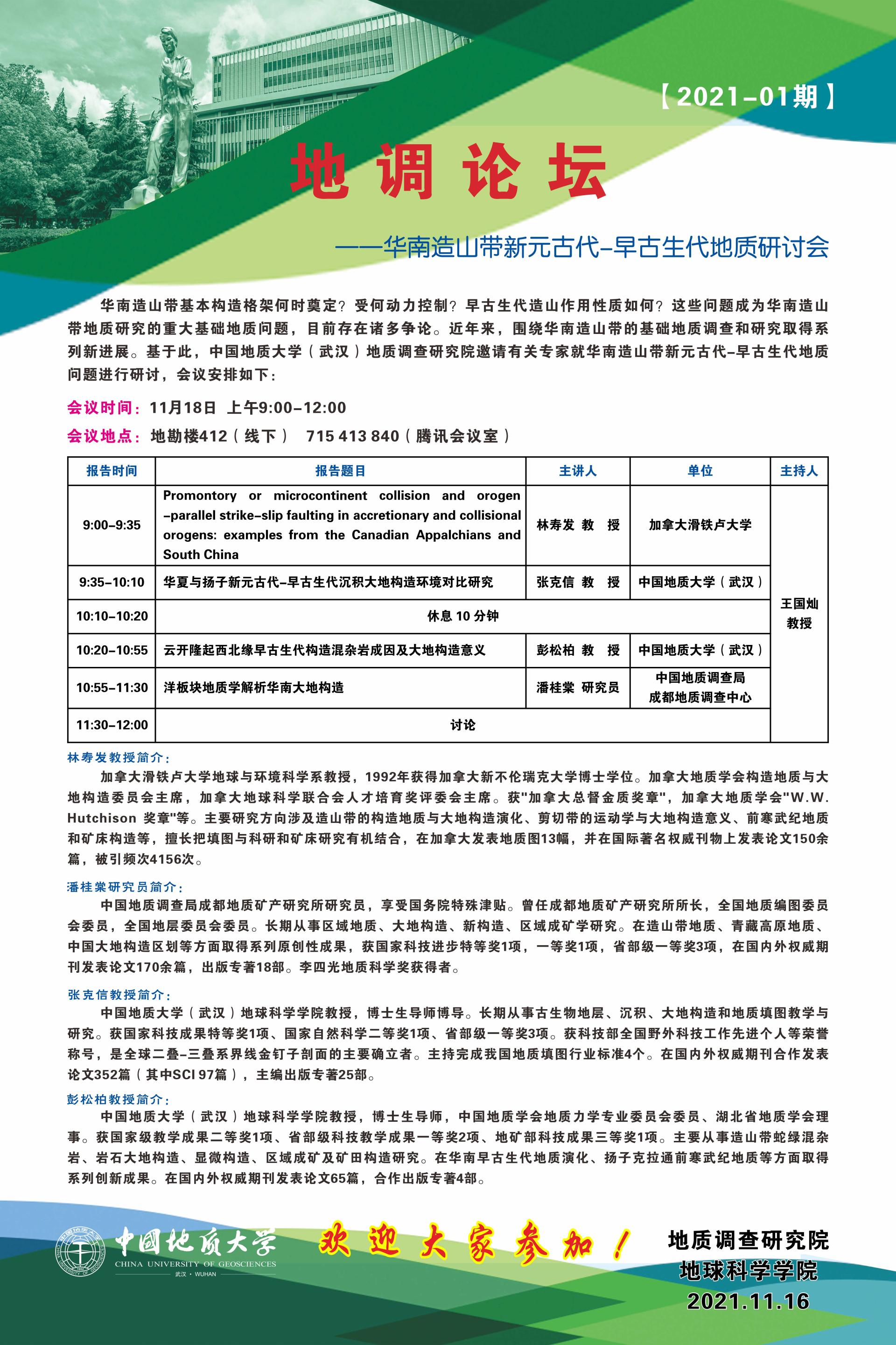 【11月18日】地調論壇:華南造山帶新元古代-早古生代地質研討會