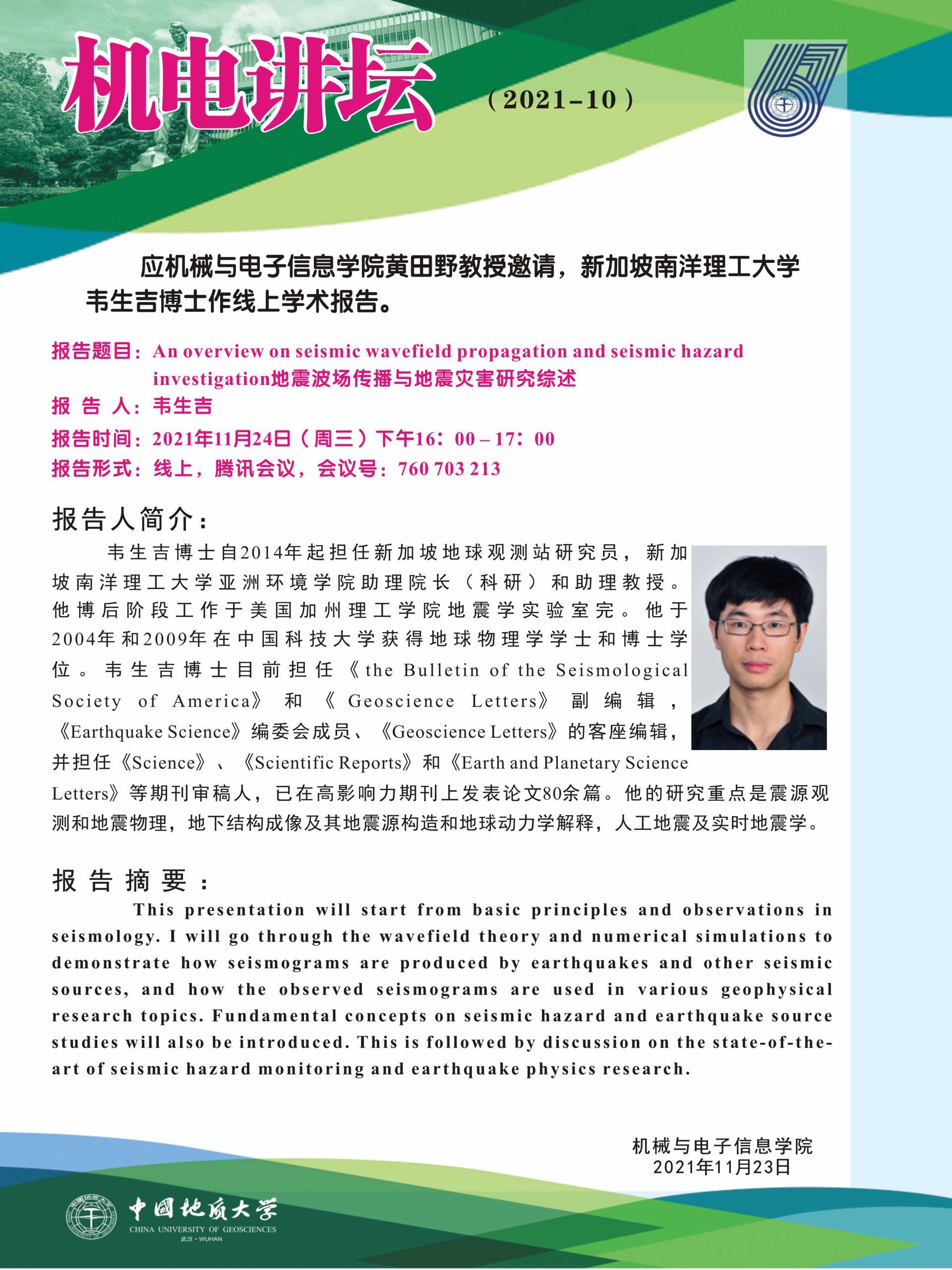 【11月24日】機電學學術論壇:新加坡南洋理工大學韋生吉博士學術報告