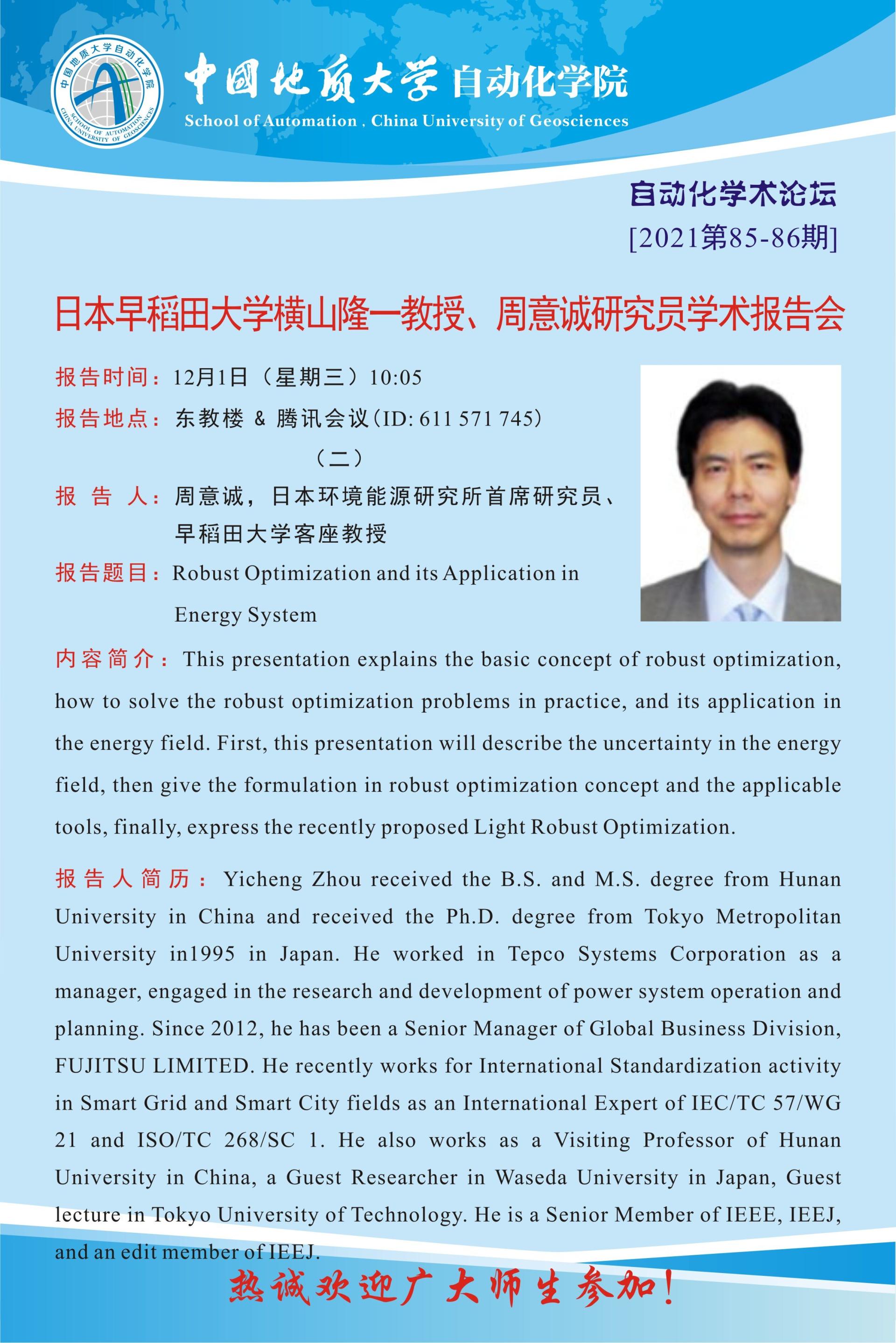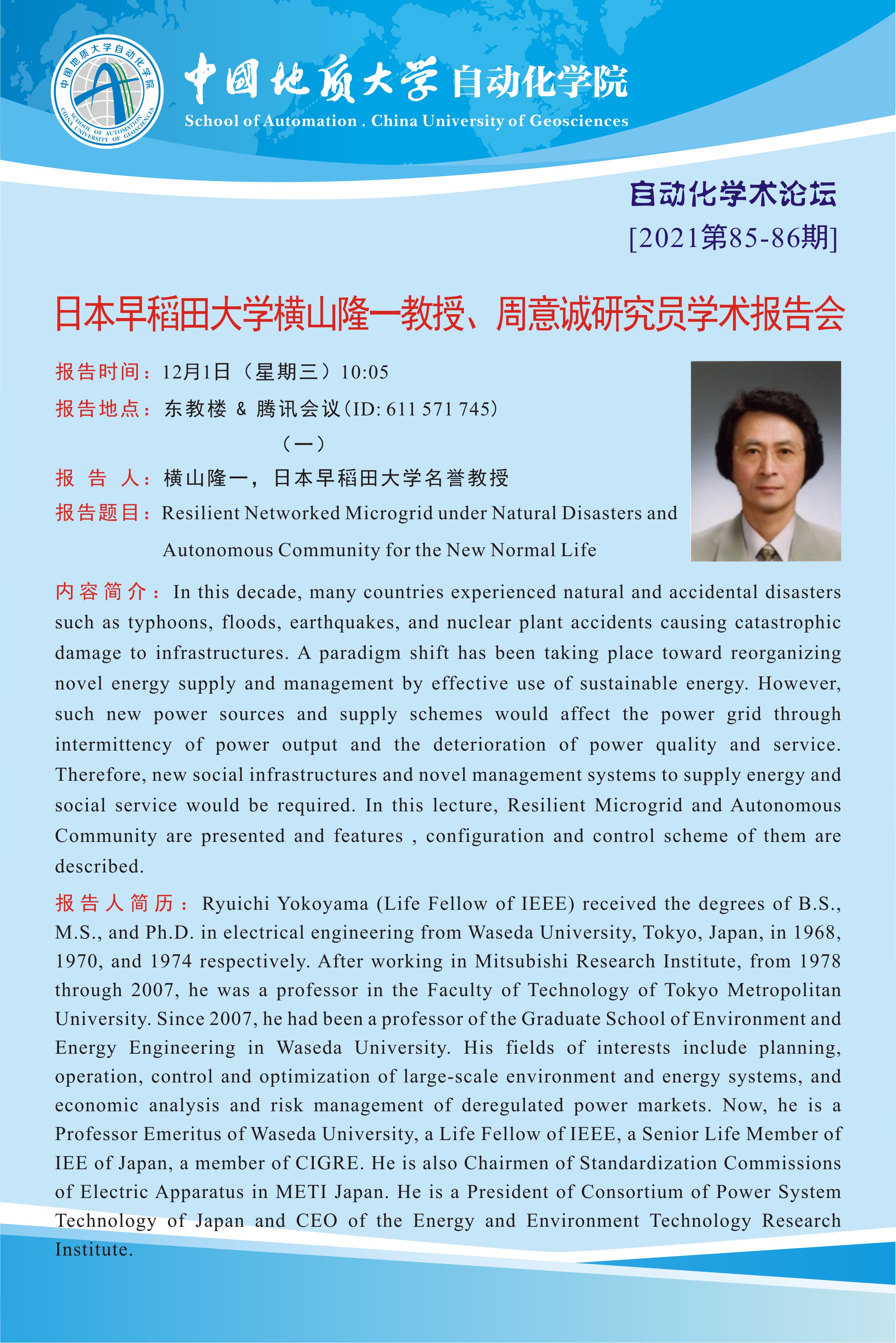 【12月1日】自動化學術論壇:日本早稻田大學橫山隆一教授、周意誠研究員學術報告