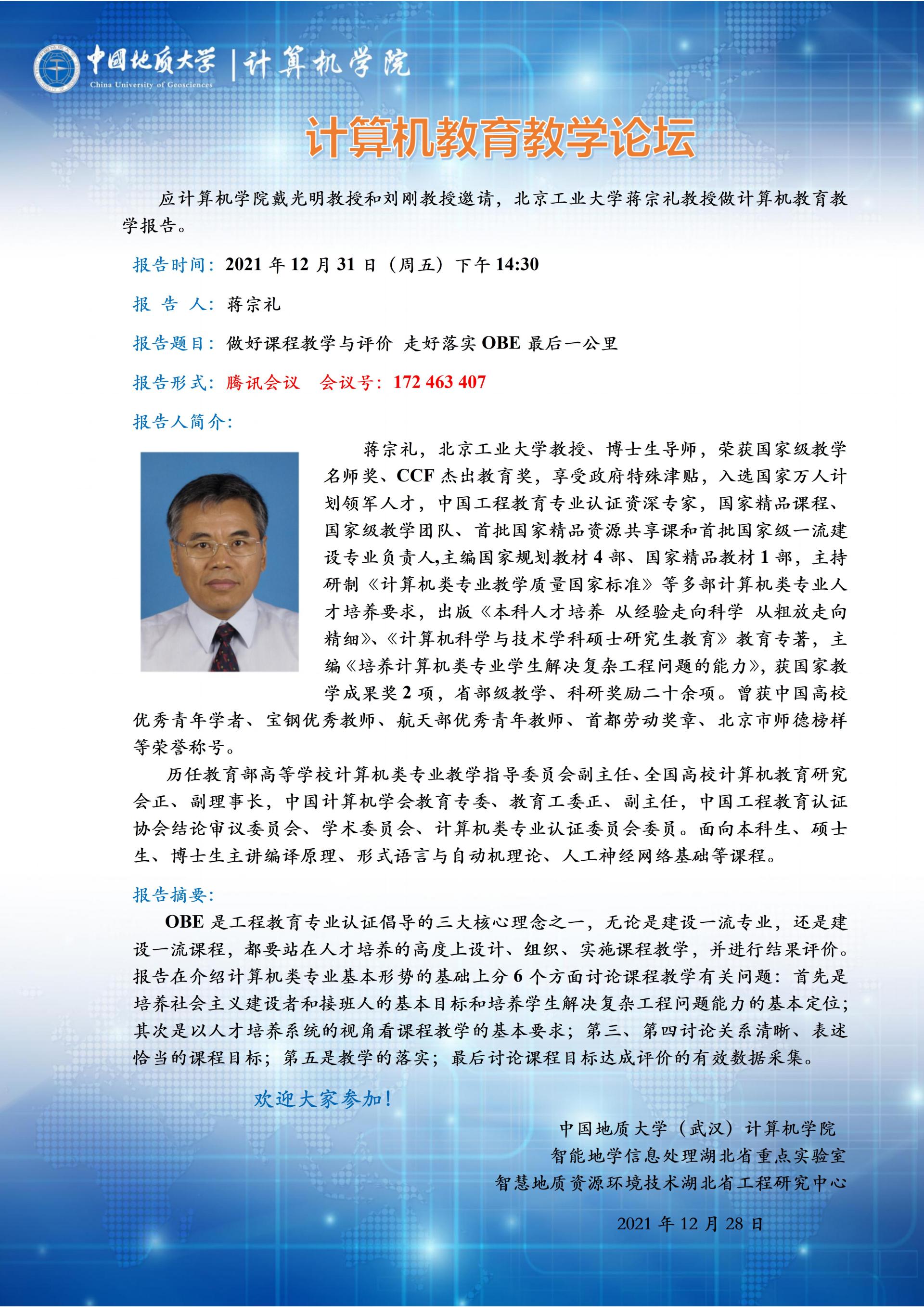 【12月31日】計算機教育教學論壇:北京工業大學蔣宗禮教授學術報告