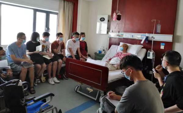 李德威在病床上召集學(xué)生開組會(huì)(2018年9月3日攝) 新華社發(fā)