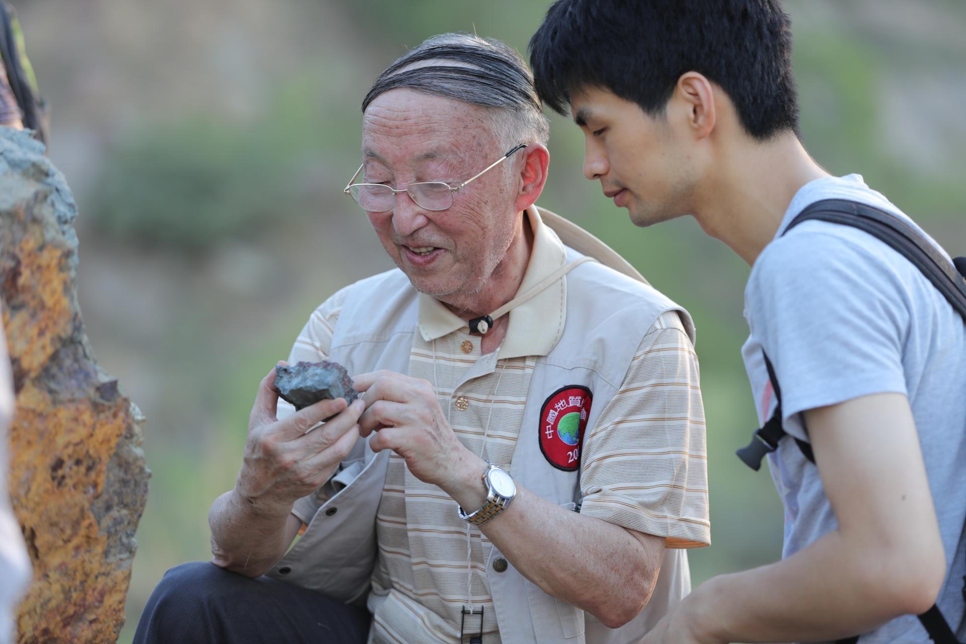 ▲殷鴻福院士(左)80多歲時仍堅持野外科考。張睿攝
