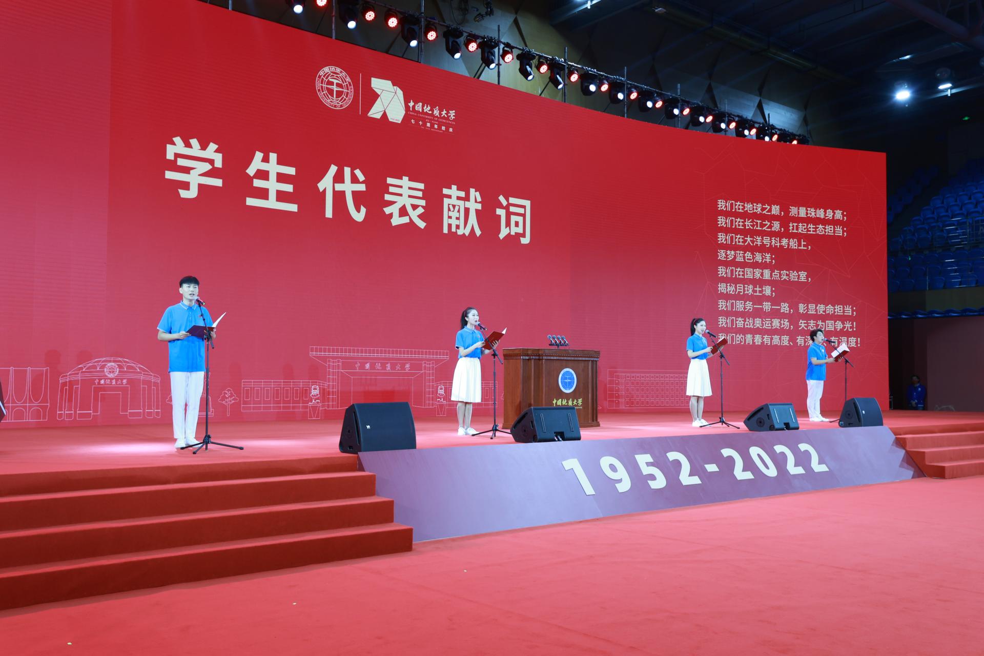 校黨委書記黃曉玫在總結致辭中指出,黨的二十大擘畫了以中國式現代化推進中華民族偉大復興的宏偉藍圖,發出了為全面建設社會主義現代化國家、全面推進中華民族偉大復興而團結奮斗的偉大號召。全校師生員工要以70周年校慶為新起點,齊心協力踏上百年奮斗新征程,加快建設地球科學領域世界一流大學,為謀求人與自然和諧發展,為實現中華民族偉大復興貢獻智慧和力量!