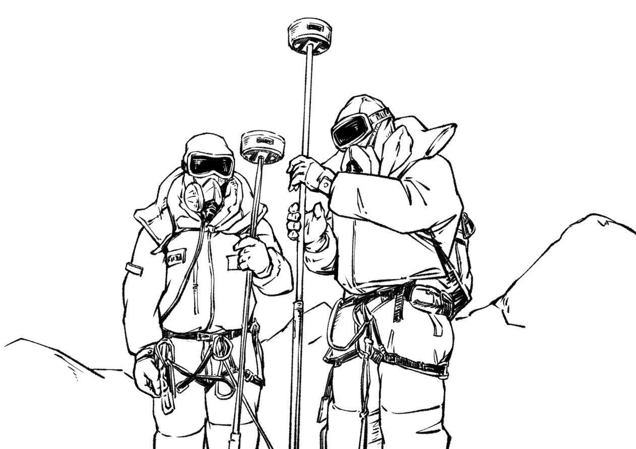 繪本《山河作證》以黑白鋼筆素描的形式,用現實主義的風格,描繪師生們野外實習和地質科考的場景。100幅畫稿中,人物造型嚴謹,動作神態逼真,場景取舍巧妙。繪本中,有的描繪老師在野外認真授課,有的描繪學生觀察地質標本,有的描繪學生采集水樣,有的描繪師生交流討論,有的則描繪在嚴寒極地從事科學考察。這些畫稿中,既有野外地質工作的歷史再現,也有最新的科學考察呈現。2022年夏天,學校組織的第二次長江源科學考察的難忘瞬間,也收入到繪本之中。此外,承載師生記憶的校園風景和建筑,在繪本中也畫了出來。