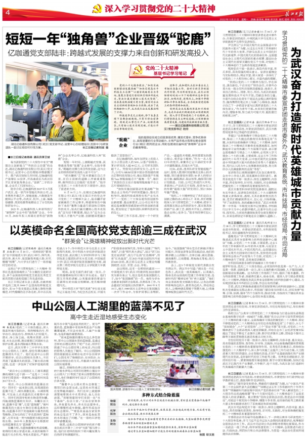 會上,這5個樣板黨支部代表聯(lián)合發(fā)布倡議書。倡議書中寫道:“湖北是一片紅色熱土,武漢是一座英雄城市。以英雄人物命名的全國高校黨建工作樣板支部,是新時代的‘精神寶庫’和‘育人搖籃’。”他們向全省高校黨支部聯(lián)合倡議,讓身邊的榜樣影響身邊的人、教育身邊的人、帶動身邊的人,讓精神譜系厚植于荊楚大地,讓英雄精神綻放出新時代光芒。