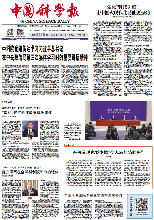 《中國科學報》(2023年3月7日 第1版 要聞)