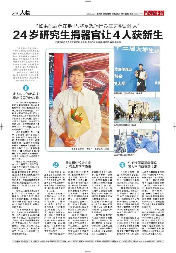 鏈接:24歲研究生捐獻器官讓4人重生 楚天都市報數字報 (hubeidaily.net)