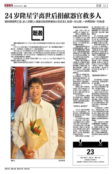 24歲隆星宇離世后捐獻器官救多人_逝者_新京報電子報 (bjnews.com.cn)