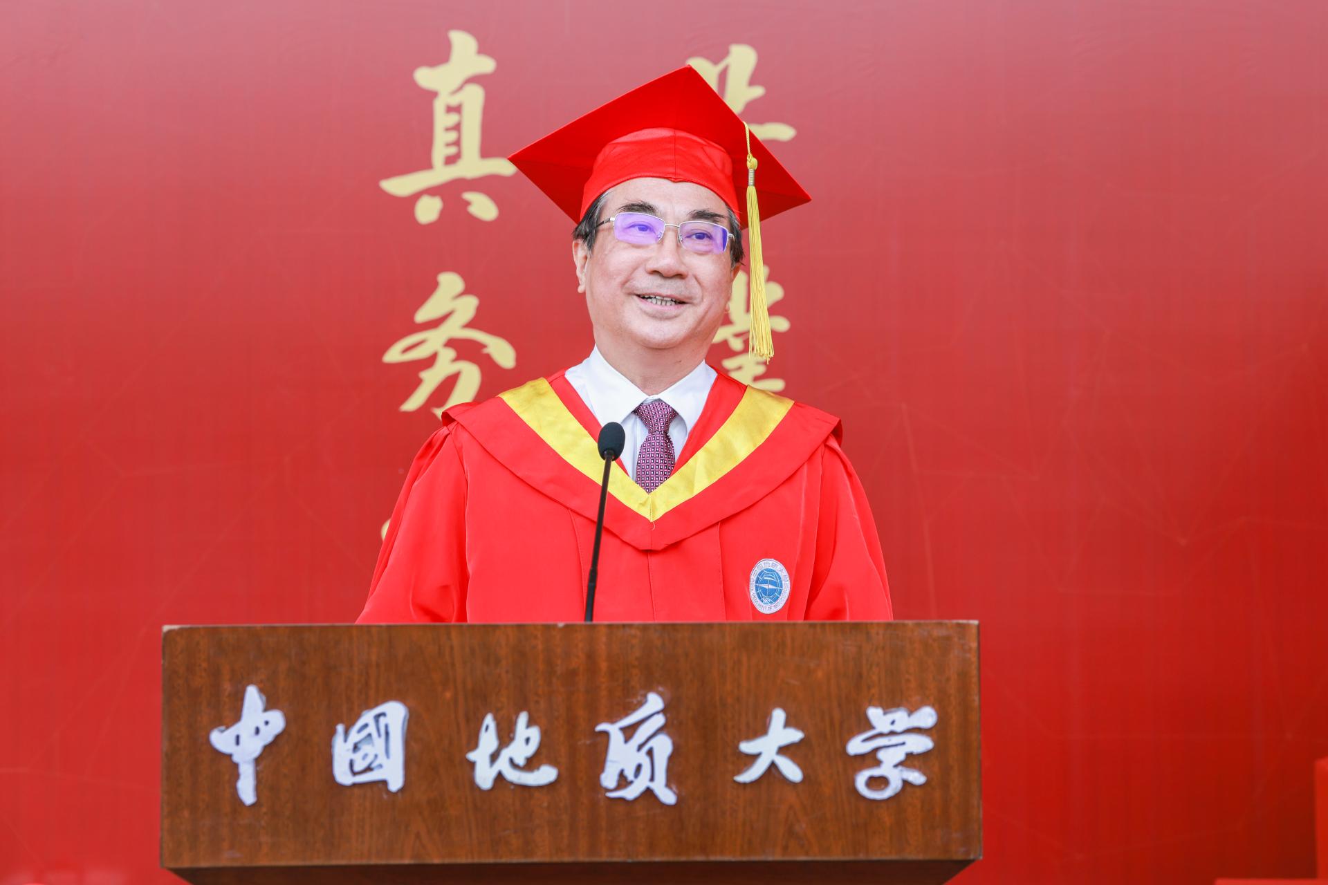 “無論是國家發展、學校事業,還是個人成長,唯有強基固本,方能行穩致遠。”王焰新院士鼓勵畢業生們要“強信仰之基”“強品德之基”“強本領之基”“強健康之基”。他說:“年輕的你們既面臨著‘千載難逢我已逢’的人生際遇,更肩負著‘天將降大任于斯人’的時代使命。無論身處哪個階段、什么時候,你們要學會用堅定的信仰指方向,用長遠的眼光和批判性思維找答案,用篤定的毅力和創新的思路干事業,將個人的‘小我’融入強國建設、民族復興的‘大我’之中,方能擔當時代重任、不斷健康成長,努力從一個勝利走向另一個勝利!”