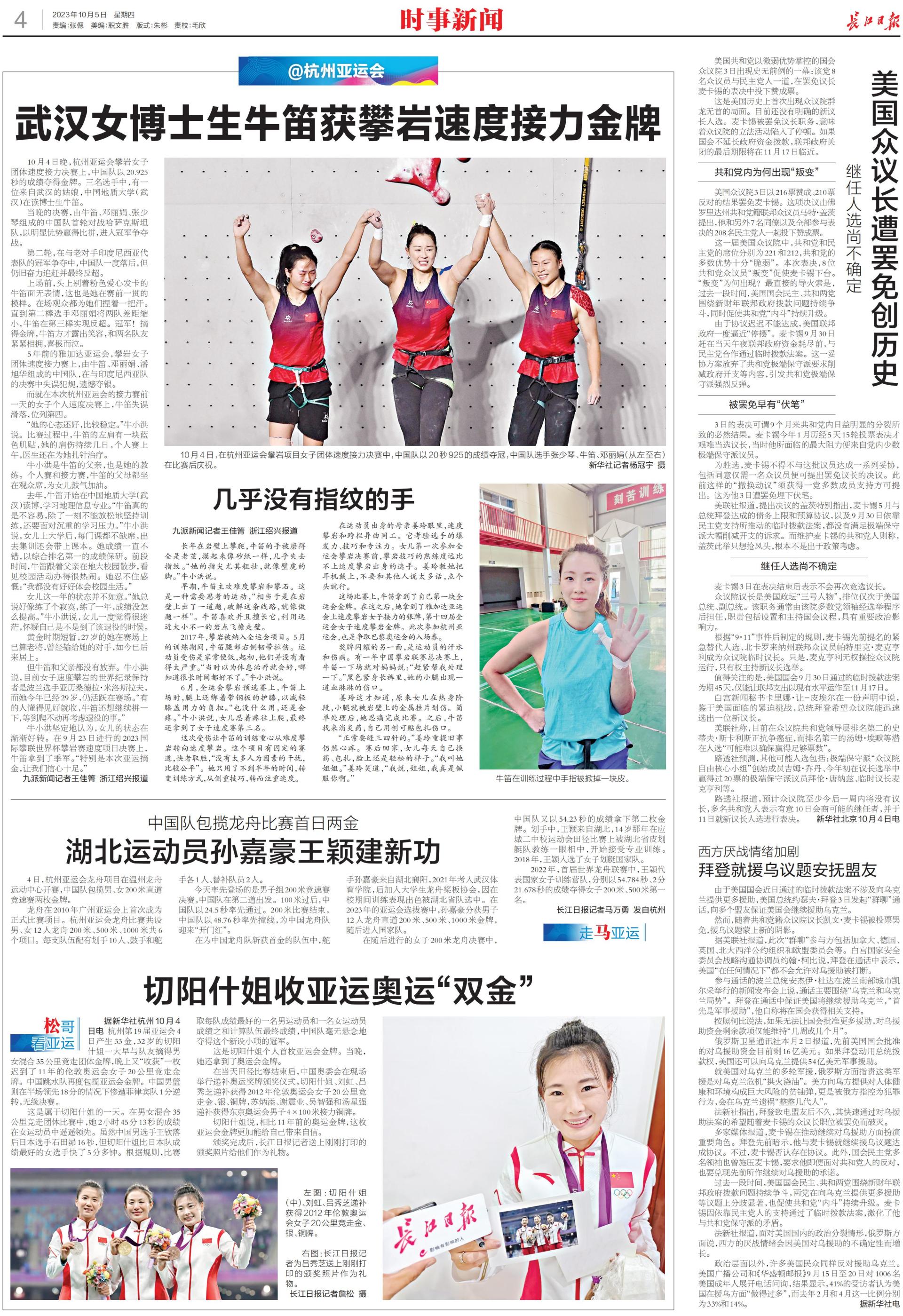 鏈接:長江日報 - 武漢女博士生牛笛獲攀巖速度接力金牌 (cjn.cn)