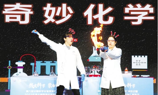 10月9日,第六屆全國科學實驗展演匯演活動暨2023年湖北省科學實驗展演匯演活動上,湖北省科學技術館選手展演的實驗《奇妙化學》。