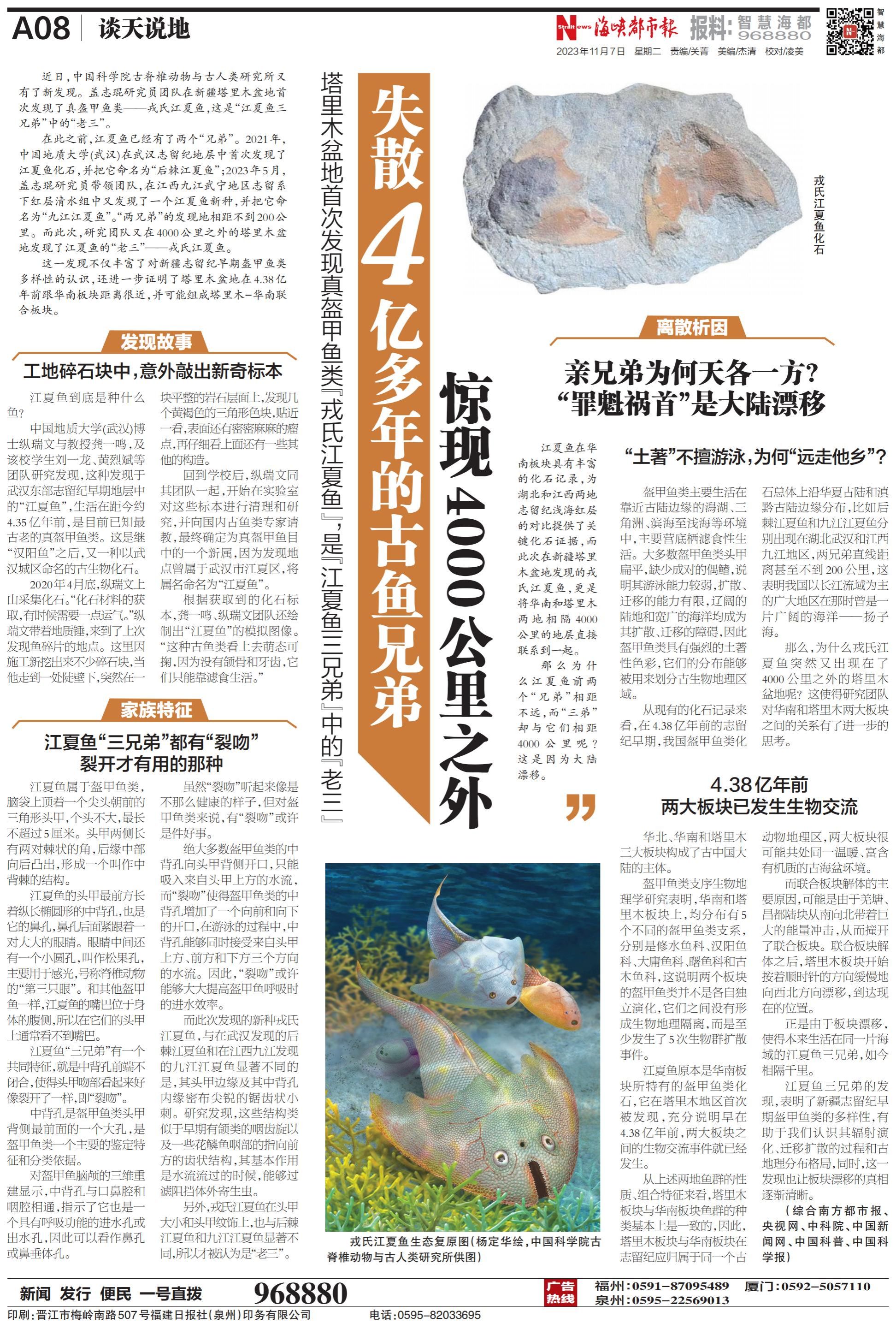 鏈接:失散4億多年的古魚兄弟 驚現(xiàn)4000公里之外 - 海峽都市報(bào)數(shù)字報(bào) (fjdaily.com)