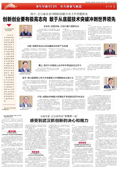 鏈接:長(zhǎng)江日?qǐng)?bào) - 感受到武漢抓創(chuàng)新的決心和魄力 (cjn.cn)