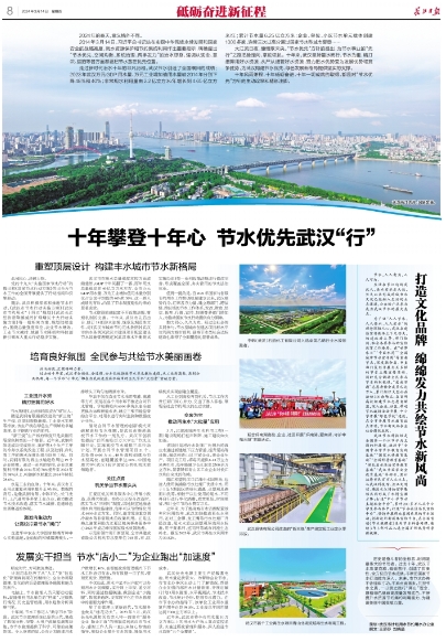 過去的十年里,武漢市全域性、全過程、全方位地推進節水單元載體建設,從工業到高校,再到公共機構,每一個節水“小單元”都在為武漢這座濱水城市的全民節水“大圖景”貢獻力量。