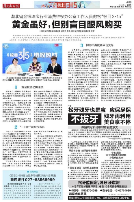 3月13日上午,湖北省金銀珠寶行業消費維權辦公室工作人員郭仁輝、中國地質大學(武漢)珠寶檢測中心質量負責人何翀、湖北省金銀首飾商會工作人員鄭丹一行,做客“極目3·15”,接聽讀者來電,就金銀、珠寶、玉器等消費問題,為大家答疑解惑。
