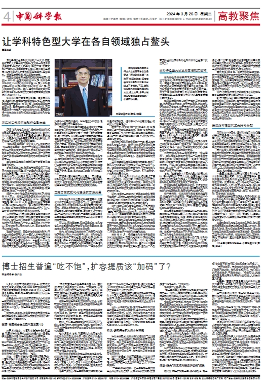 我們是在人口規(guī)模巨大的國(guó)家辦世界上規(guī)模最大的高等教育。高質(zhì)量的高等教育體系不僅需要一批世界一流的綜合性大學(xué),更需要建好數(shù)十所世界一流的國(guó)家級(jí)學(xué)科特色型大學(xué),以及數(shù)百所高水平的地方學(xué)科特色型大學(xué),從而滿足發(fā)展新質(zhì)生產(chǎn)力、實(shí)現(xiàn)中國(guó)式現(xiàn)代化對(duì)高素質(zhì)專門人才的剛需,以及人民群眾接受優(yōu)質(zhì)高等教育的剛需。