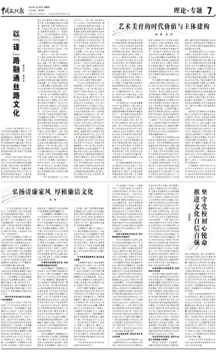 藝術美育在當今社會具有重要的時代價值,是幫助廣大青少年樹立正確的世界觀、人生觀、價值觀,提升道德理想情操和審美素養的重要途徑之一。藝術美育的功能始終是為中華民族偉大復興培養時代新人。習近平總書記強調:“美術、藝術、科學、技術相輔相成、相互促進、相得益彰。”新時代新征程,要堅持把實現人民對美好生活的向往作為現代化建設的出發點和落腳點,著力推進以物質文明和精神文明相協調的中國式現代化,以社會主義核心價值觀為引領,弘揚中華美育精神,推動藝術美育創新發展,為新時代美育工作作出新的貢獻。如何釋放藝術美育的價值功能,以發揮藝術美育獨具的育人優勢,進而促進社會個體在現代化進程中的良善發展,值得美育政策制定者和美育工作者的共同關注。