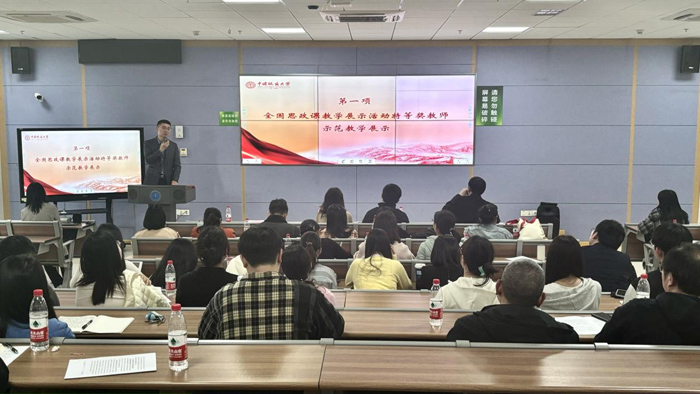 近日,馬克思主義學院思政課示范教學展示暨“思政課提質增效行動”啟動活動在中國地質大學(武漢)舉行?;顒友埲珖咝K枷胝卫碚撜n教學展示活動獲獎者作教學示范展示。