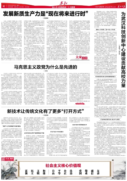 科技創新的落腳點在產業,產業發展是創新驅動發展的關鍵。武漢是經濟發展重鎮、工業產業強市,在漢高校要助攻武漢打好產業創新這一主動仗,培育壯大新質生產力,形成具有科創特征的現代化產業體系。