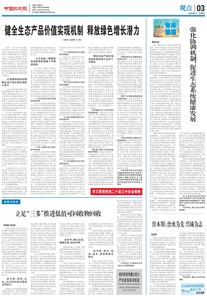 國家發展和改革委員會經濟體制與管理研究所發布的《中國低值可回收物回收利用現狀研究報告》顯示,2021年我國各類低值可回收物總回收率約為26.6%,遠低于我國主要再生資源75%以上的平均回收利用率。低值可回收物是在生產生活中產生的具有一定回收利用價值、會對生態環境產生一定危害的各類廢棄物,具備廢棄物和可用資源的雙重屬性,如廢塑料包裝、廢舊紡織品、廢玻璃等。目前,低值可回收物回收工作存在政府重視不夠、企業回收積極性不強、公眾認識度不高等問題。筆者認為,應當立足“三多”,實行多主體協同發力、多環節全鏈條處理、多手段配合的機制,共同推進低值可回收物的回收工作。