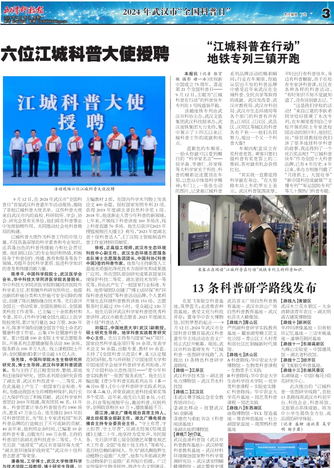 鏈接:武漢科技報數字報刊平臺-六位江城科普大使授聘 (kexing100.com)