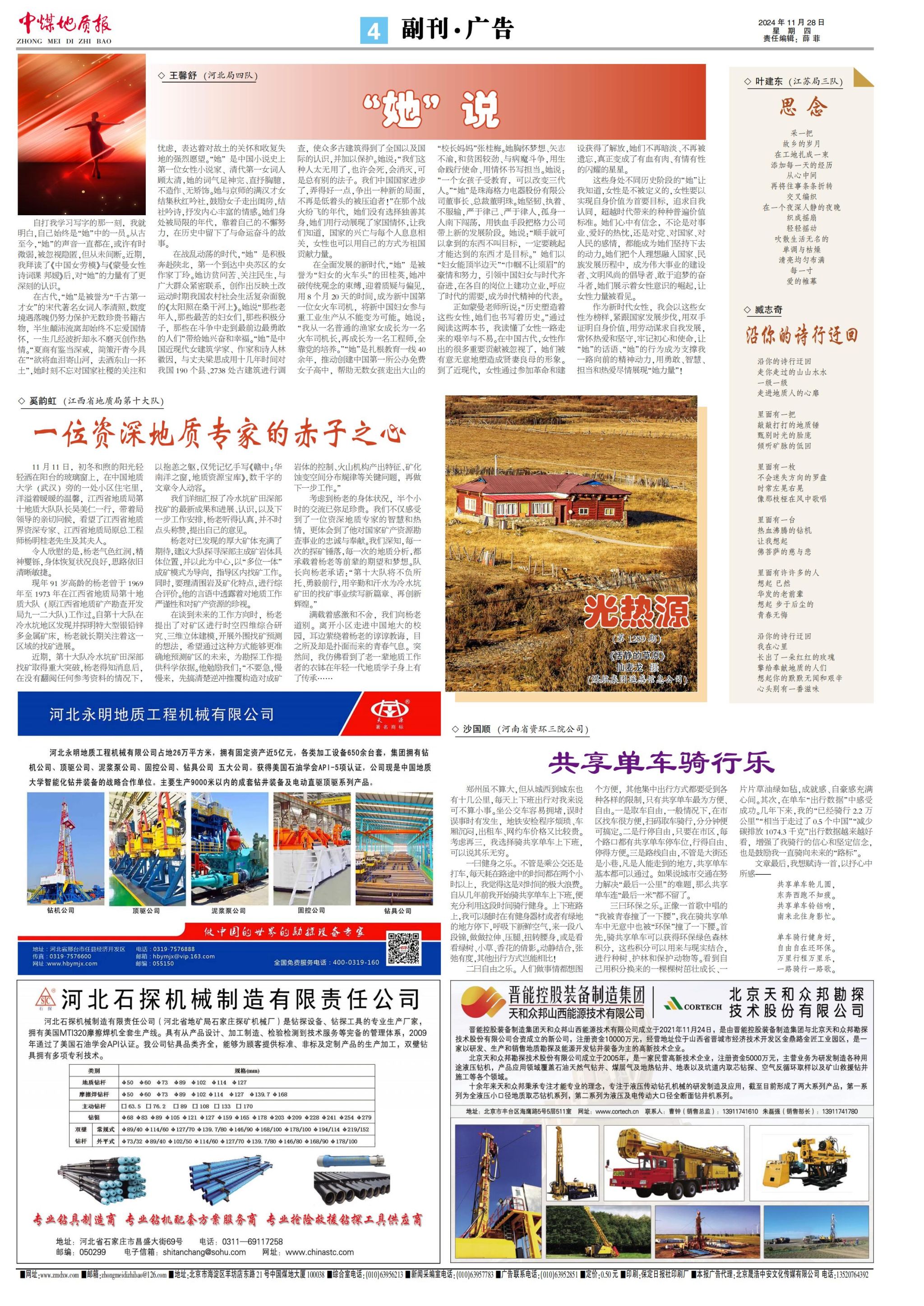 鏈接:一位資深地質專家的赤子之心 20241128期第A4版:副刊·廣告_中煤地質報