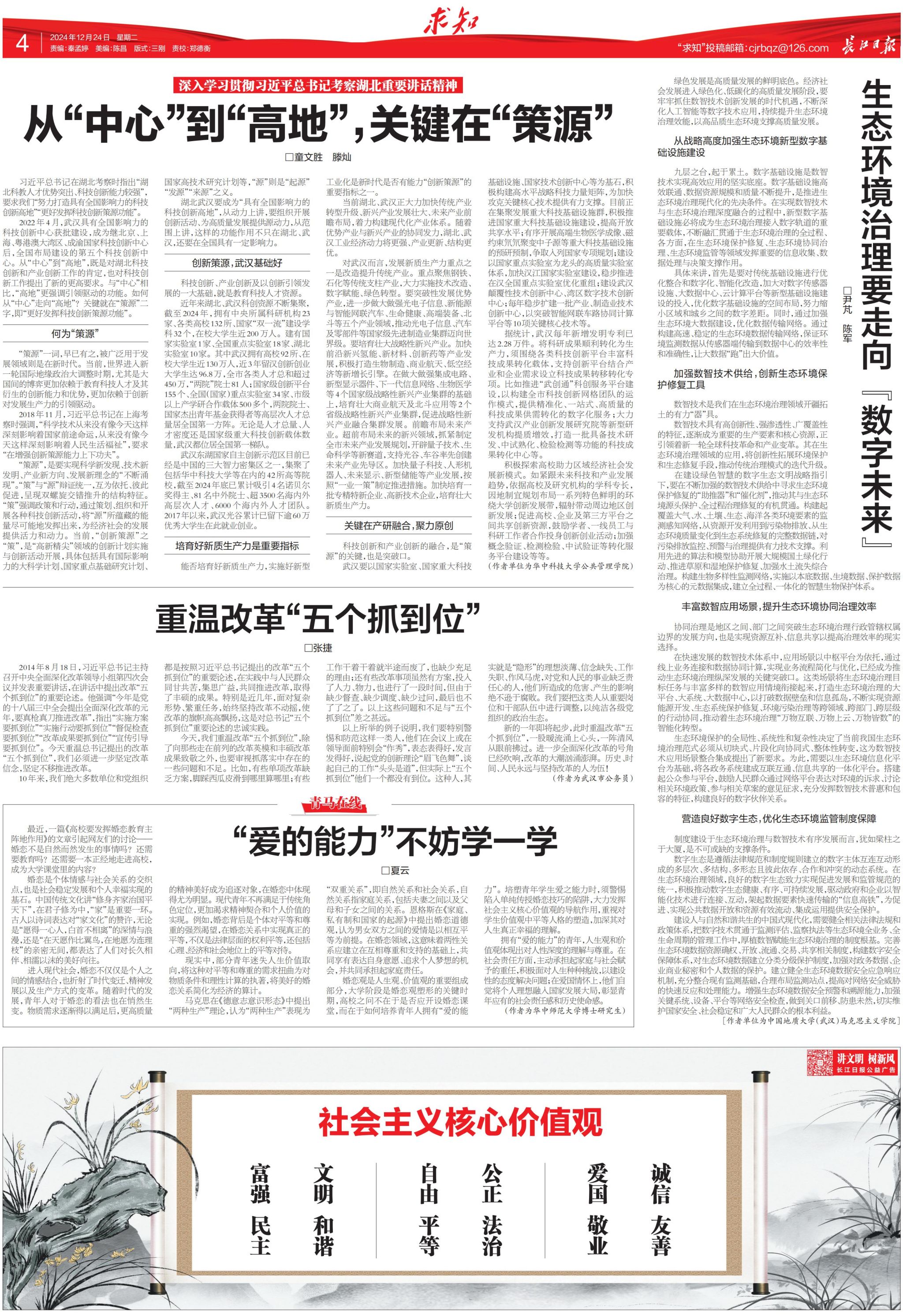 綠色發展是高質量發展的鮮明底色。經濟社會發展進入綠色化、低碳化的高質量發展階段,要牢牢抓住數智技術創新發展的時代機遇,不斷深化人工智能等數字技術應用,持續提升生態環境治理效能,以高品質生態環境支撐高質量發展。