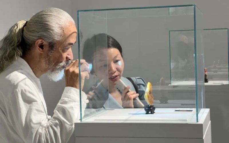 與標準宣貫會同步亮相的印石專題展,堪稱“視覺盛宴”。百余件展品中,既有被譽為“石帝石后”的田黃和雞血石,也有老撾石創新雕刻作品。 展覽特別設立“回流文物專區”,清代芙蓉石雕刻《送子觀音》等流失海外的珍品首次來漢展出。