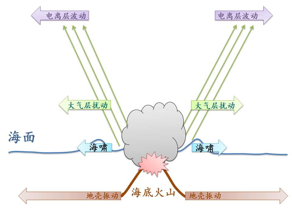 2022年1月15日,位于太平洋中央的湯加海底火山噴發,是本世紀最強烈的火山災難事件。遮天蔽日的火山灰燼和環繞全球強烈的沖擊波,讓全世界再次目睹了人類在自然面前的渺小,并意識到對火山、地震和海嘯等突發自然災害的預報和預警的迫切需求。雖然各國已經零星建立起了一些觀測海底火山和預警海嘯的系統,但是當今對災難預警的方法與系統仍有極大的提升空間。廣袤海域是許多災難性事件的監測盲區,同時傳統的預警方法需要耗費巨大的人力和財力成本。這些困難成為人類對火山爆發和海嘯等自然災害應對能力提升的主要瓶頸。