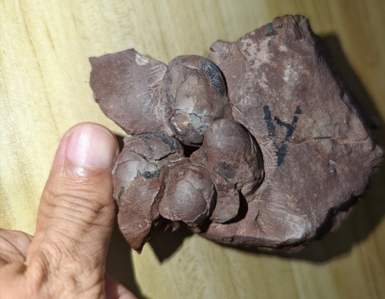 2021年,研究團隊在江西省贛州市贛縣區梅林鎮野外考察時,發現并征集一窩保存較完整的蛋化石,呈橢圓形,共6枚,無規則排列在一起。蛋殼外表面有蠕蟲狀和結節狀紋飾,最重要的是蛋化石極小,蛋殼極薄,這些特征都與其他已知的恐龍蛋化石有所不同。該蛋化石產出層位為塘邊組,時代為上白堊統,約8000多萬年前。