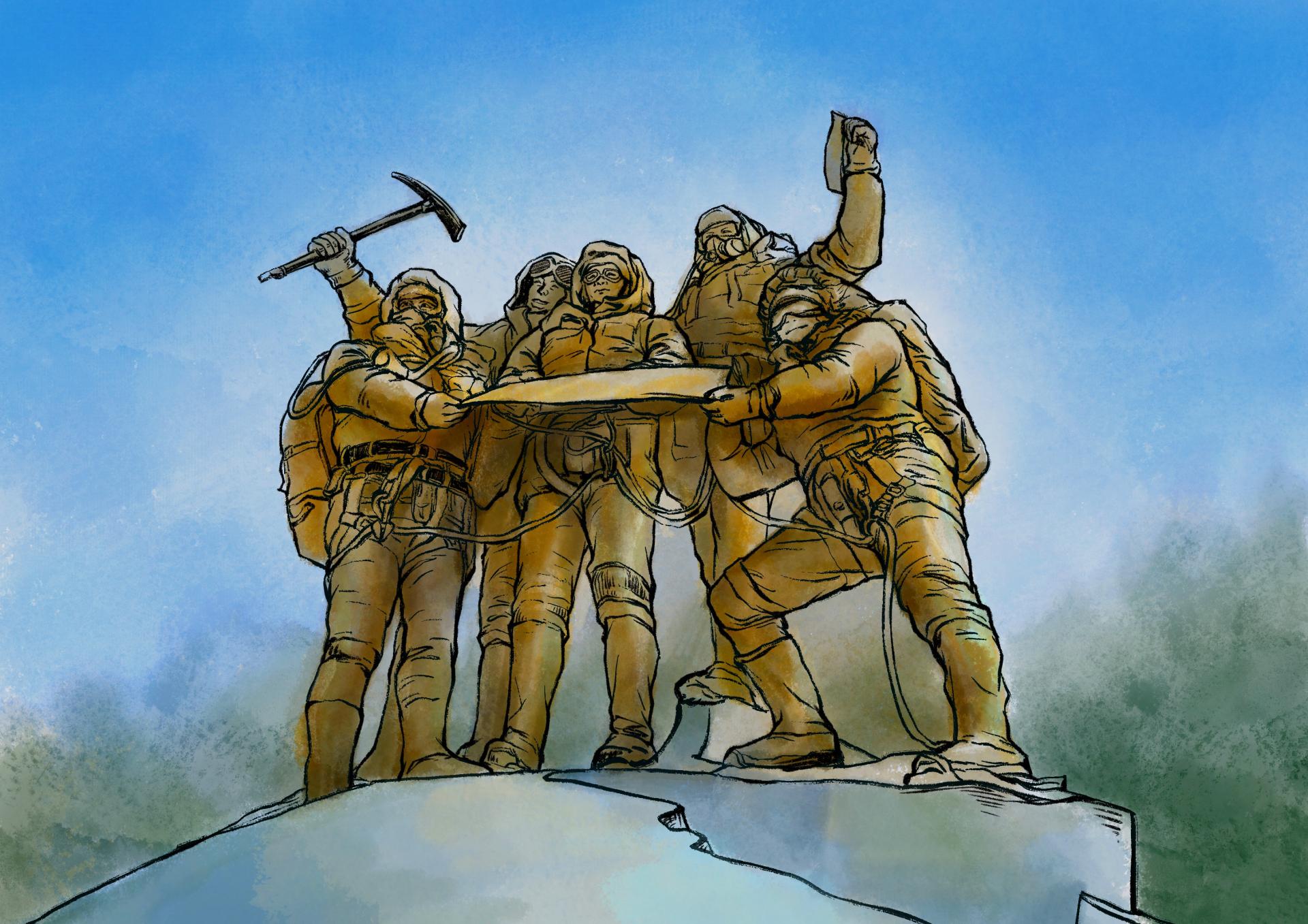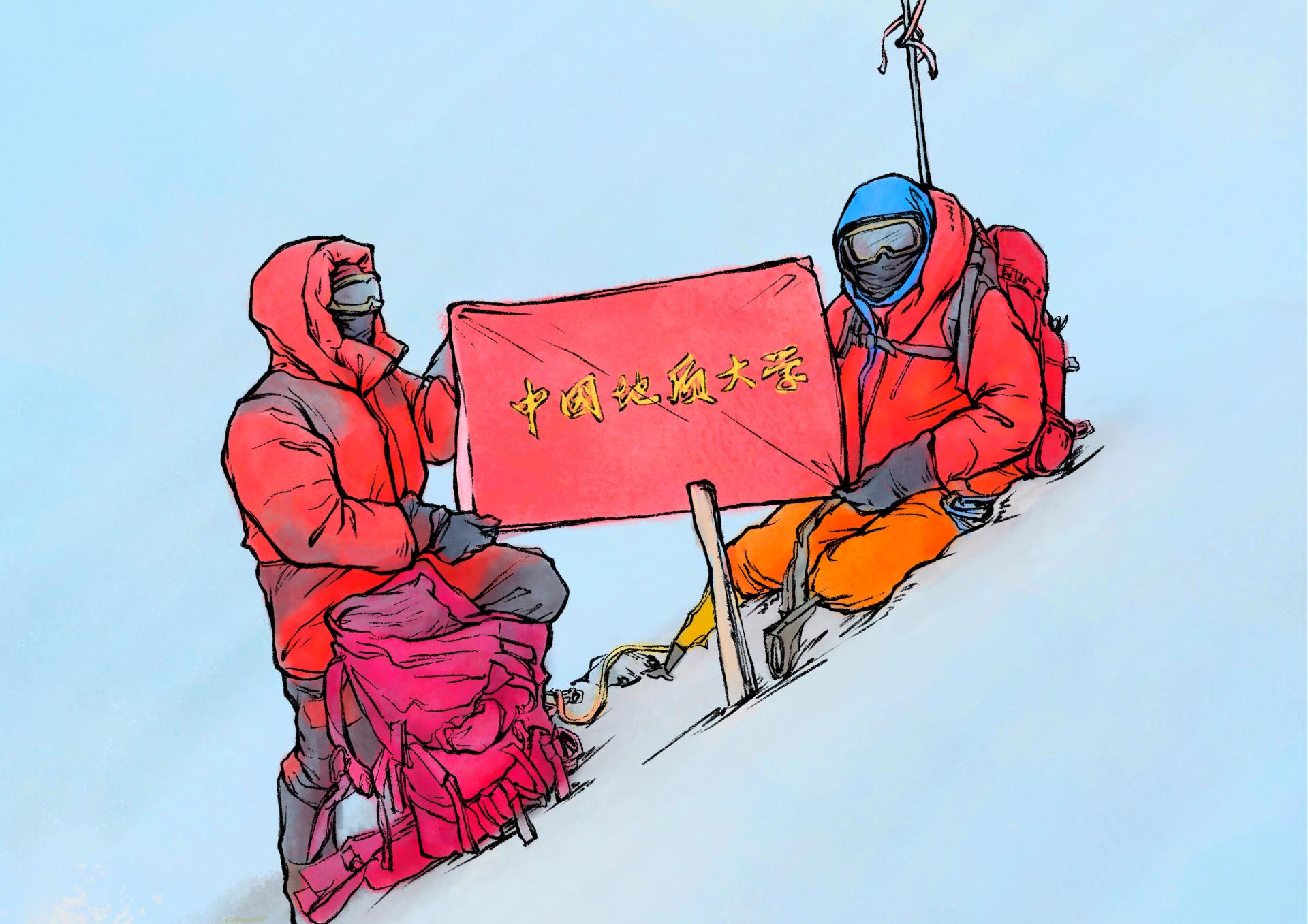 地大新聞網訊(記者吳仁喜 王俊芳)7月27日,我校陳華文老師帶領學生劉雅文、唐鈺君創作的彩色繪本《攀登者》,前后利用90天時間得以完成。該繪本共20幅,以文圖并茂的藝術方式,講述學校十年來的登山科考故事,弘揚“扎根中國、胸懷天下、勇攀高峰、追求卓越”的攀登精神。據了解,這是國內第一部講述大學登山科考故事的原創繪本,以此獻給學校成立七十周年。