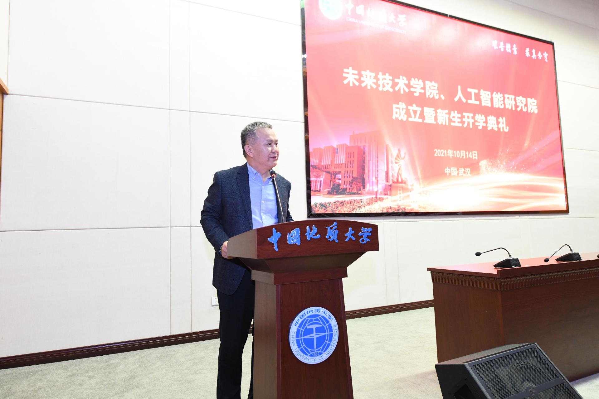 吳敏在未來技術學院開學典禮上講話