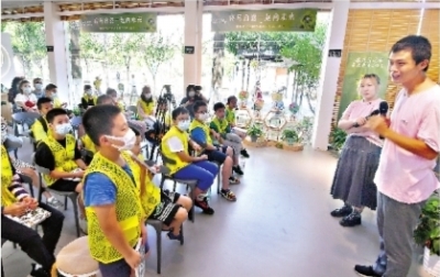 正式講座前,陳旭帶著參加濕地研學活動的孩子們來到解放公園的湖邊,采集水草中的硅藻樣本,用牙刷將水草上附著硅藻刷到試管內。
