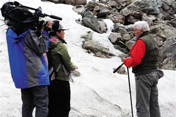 在播出的紀錄片中,可以看到畫面中一位老人從布滿碎石的羊腸小道上走過,身邊是萬丈懸崖,不時有山石滾落;他拄著登山杖一步步下到4000米深的冰川谷底,雙腳都已麻木……就這樣,人們不僅記住了新疆的美麗,也記住了這個充滿魅力的老頭兒。