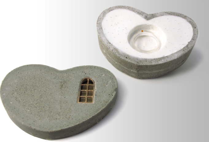 任開(kāi)作品,《因?yàn)閻?ài)情》,胸針,11x8x4,水泥,銀,寶石,收藏于瑞士國(guó)家博物館(2011年)