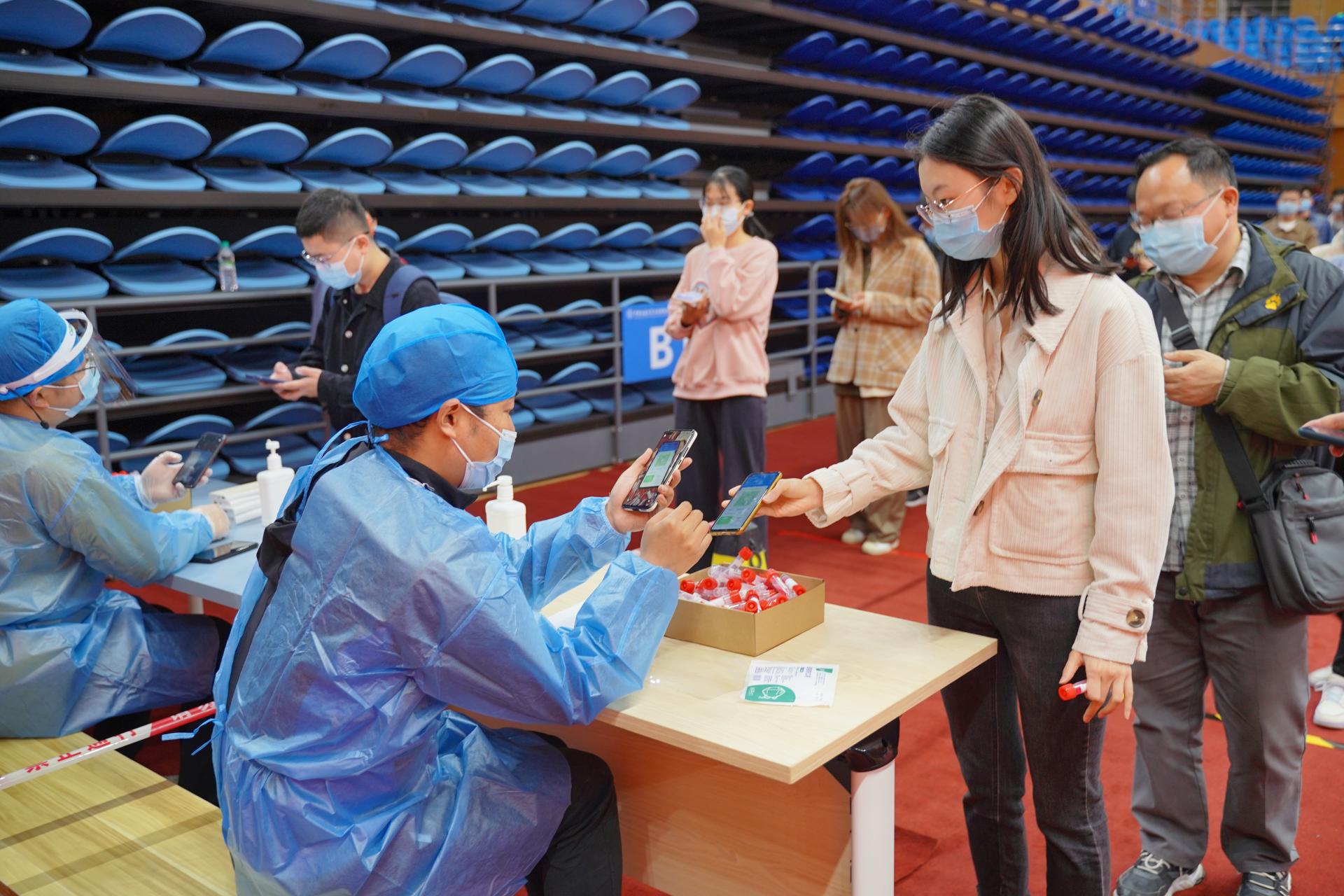 開學至今,學校南望山校區(qū)進行了八輪全員核酸檢測,未來城校區(qū)進行了十三輪全員核酸檢測。在此過程中,黨員同志始終沖鋒在前,承擔了布置場地、數(shù)據(jù)錄入、師生引導、秩序維護等大量工作,黨徽在疫情防控一線熠熠生輝,黨旗在疫情防控一線高高飄揚,為學校順利完成核酸檢測工作提供了堅實保障。