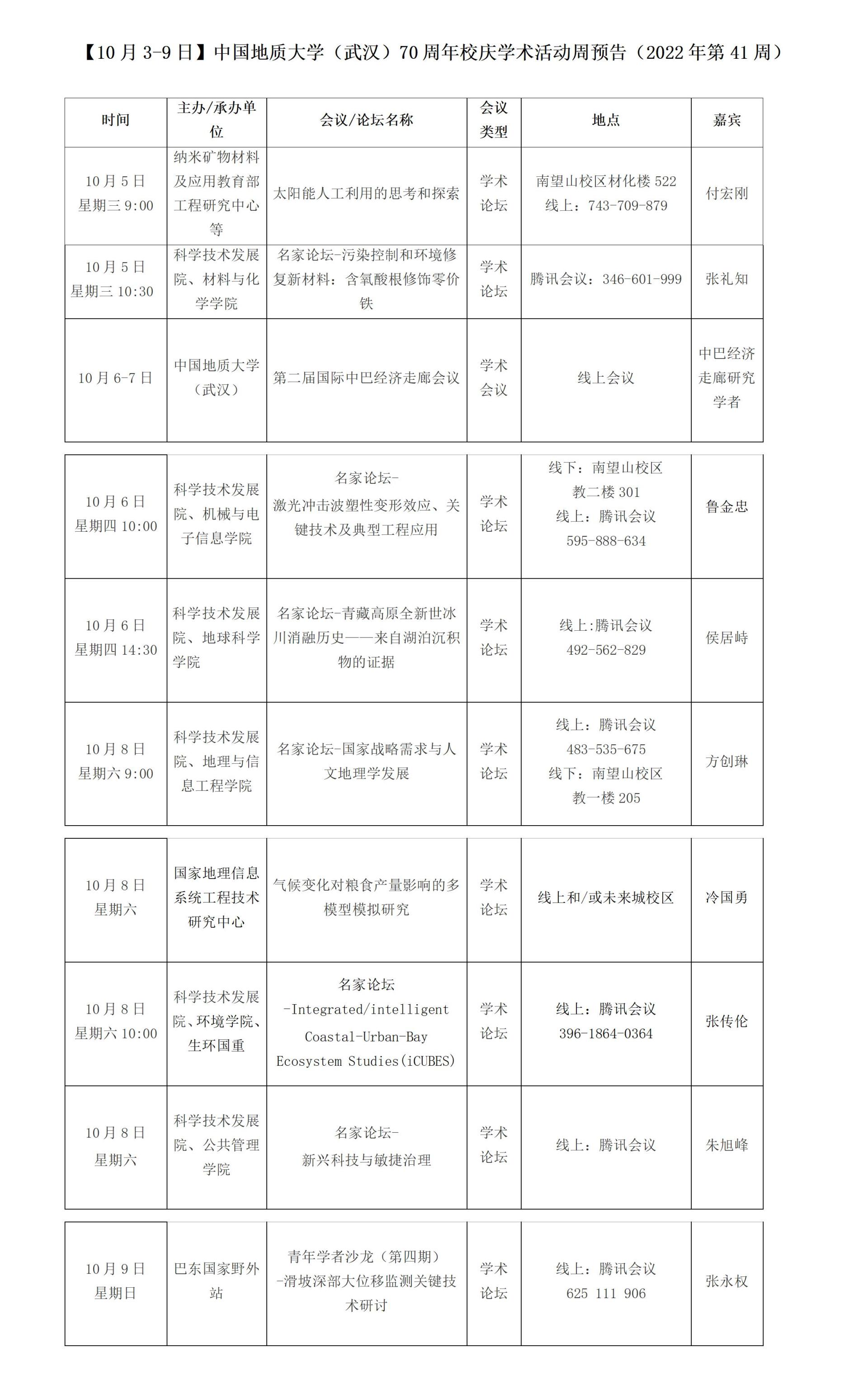 【10月3-9日】中國地質(zhì)大學(xué)(武漢)70周年校慶學(xué)術(shù)活動周預(yù)告(2022年第41周)