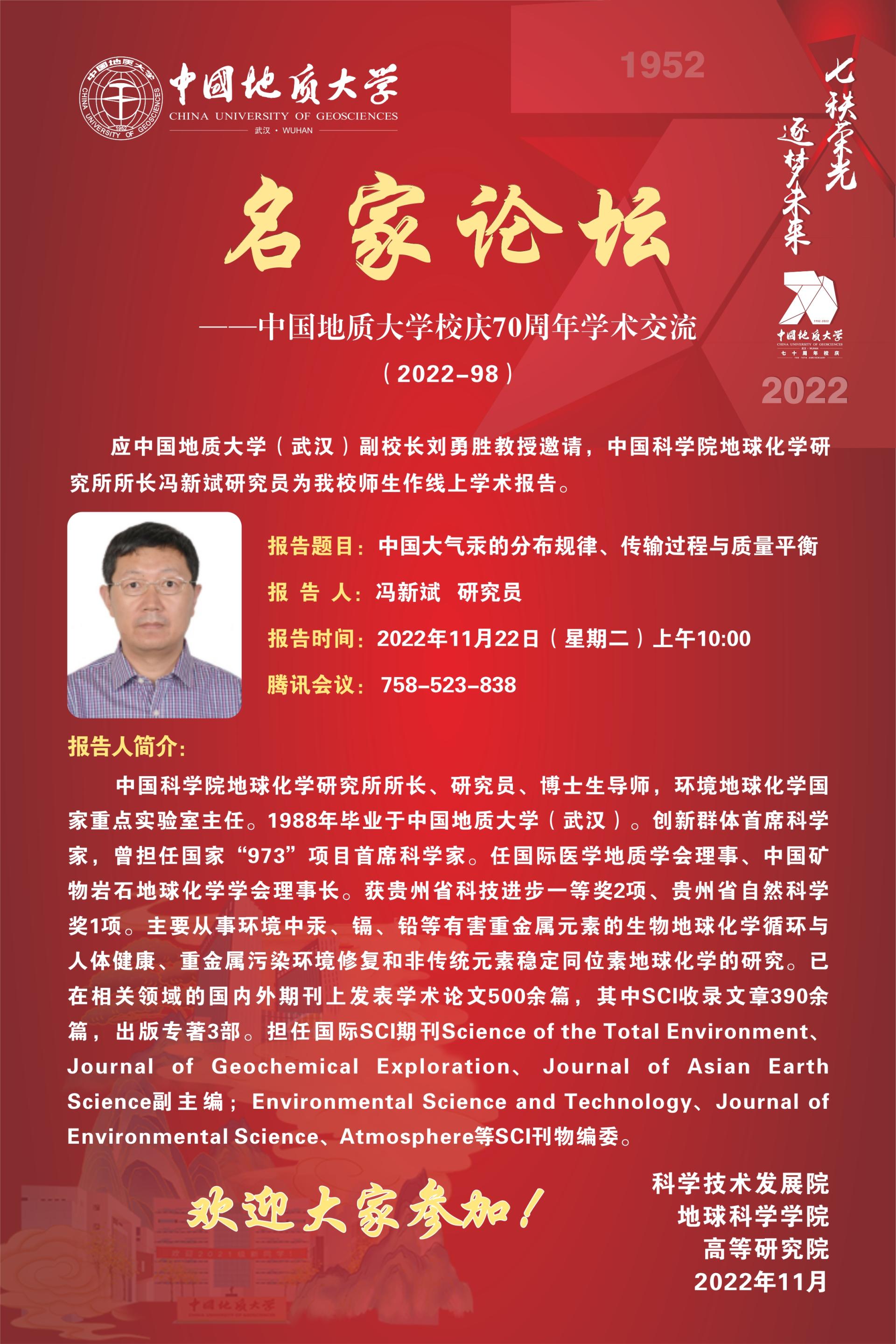 【11月22日】名家論壇:中國科學(xué)院地球化學(xué)研究所馮新斌研究員學(xué)術(shù)報(bào)告