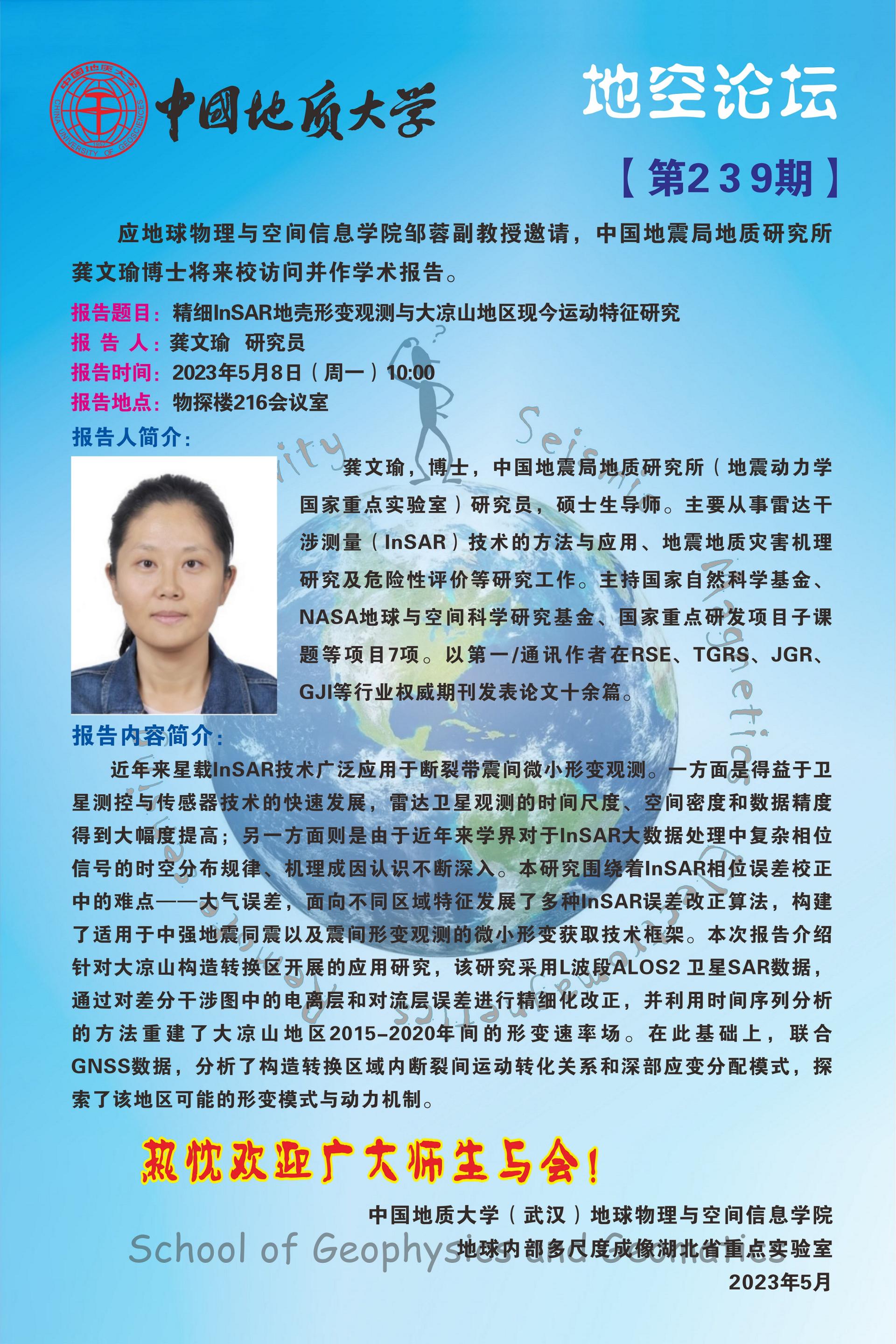 【5月8日】地空論壇:精細InSAR地殼形變觀測與大涼山地區現今運動特征研究