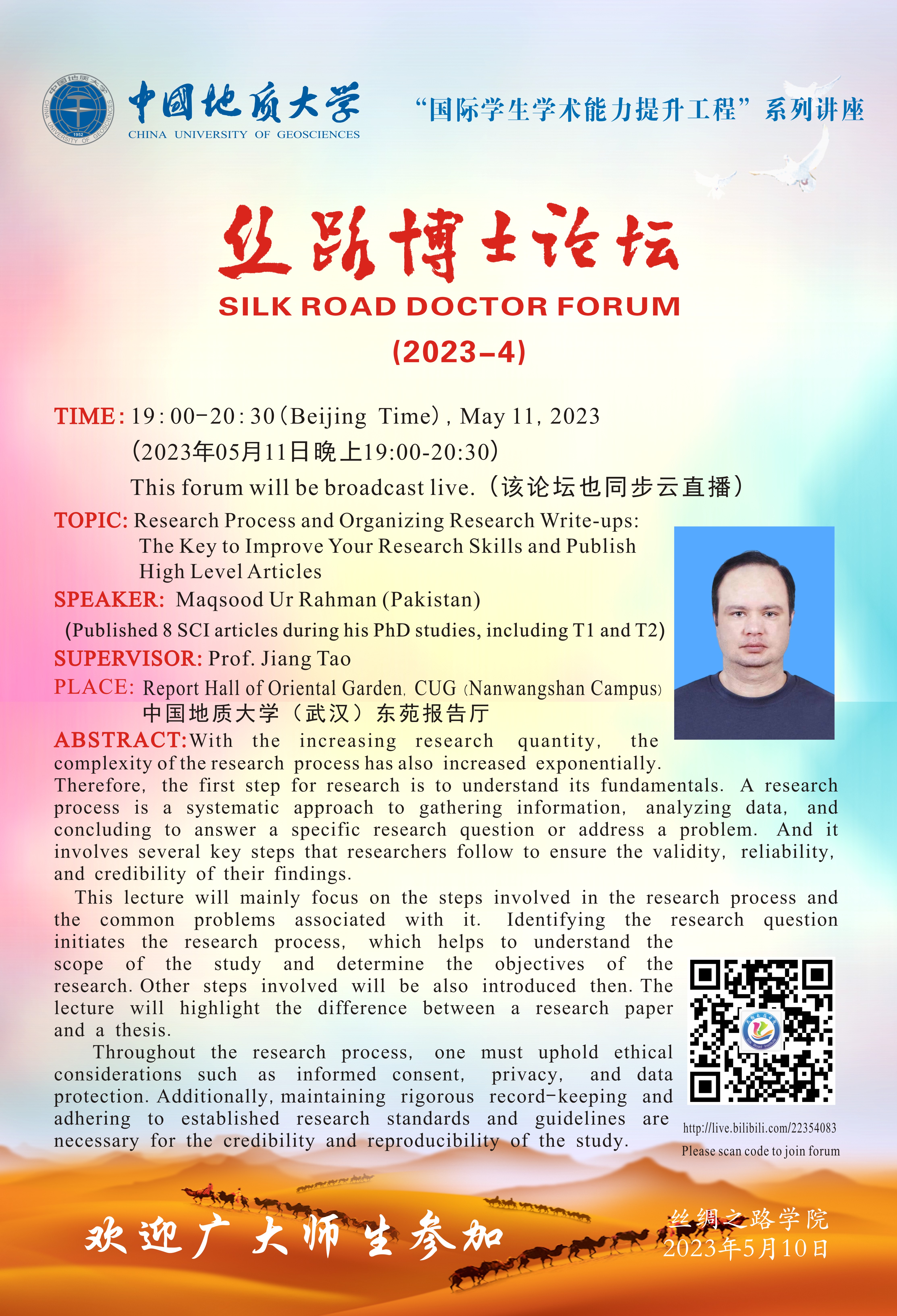 【5月11日】絲路博士論壇(2023-4):Research Process and Organizing Research Write-ups: The Key to Improve Your Research Skills and Publish High Level Articles