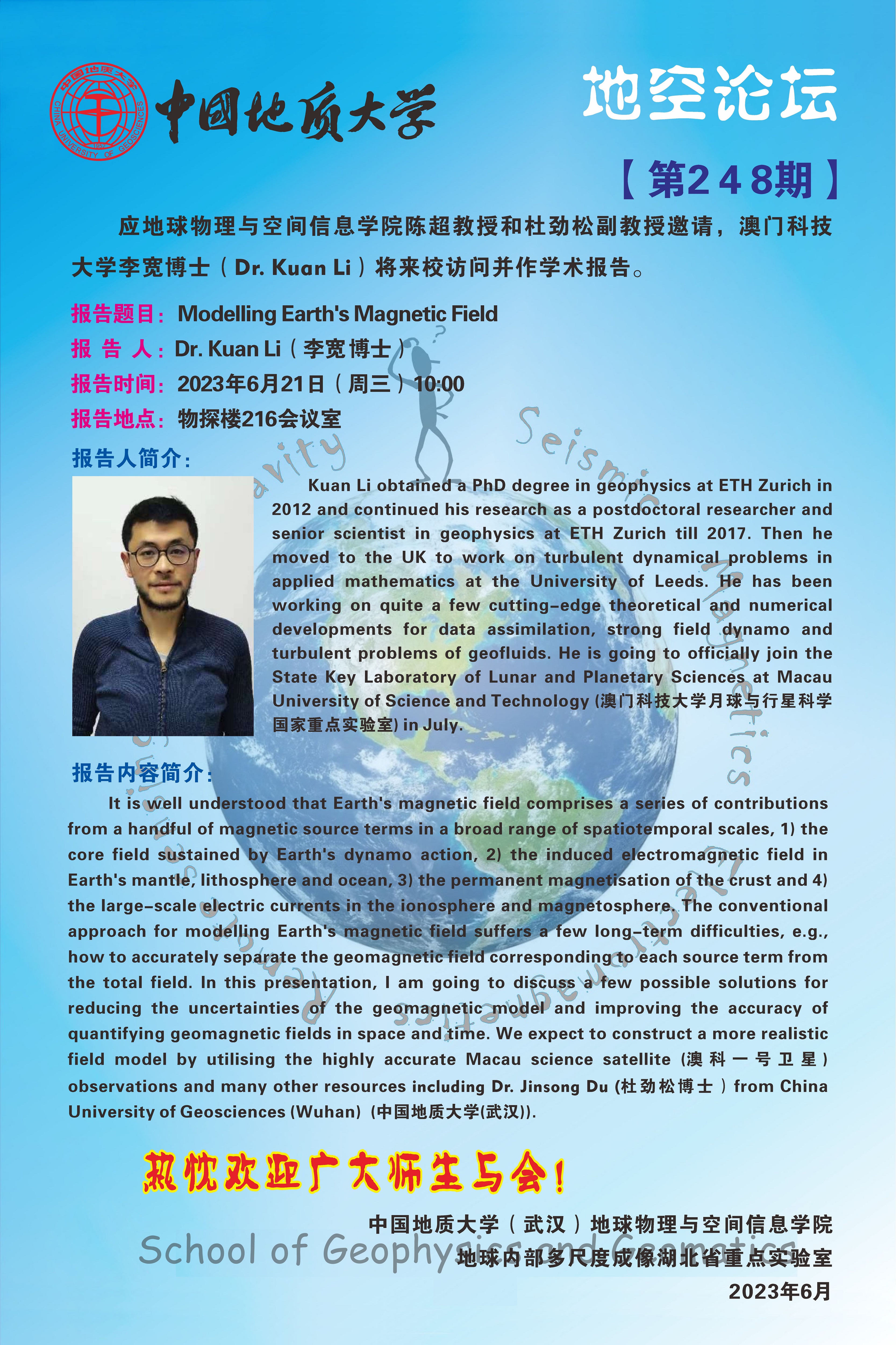 【6月21日】地空論壇:Modelling Earth’s Magnetic Field