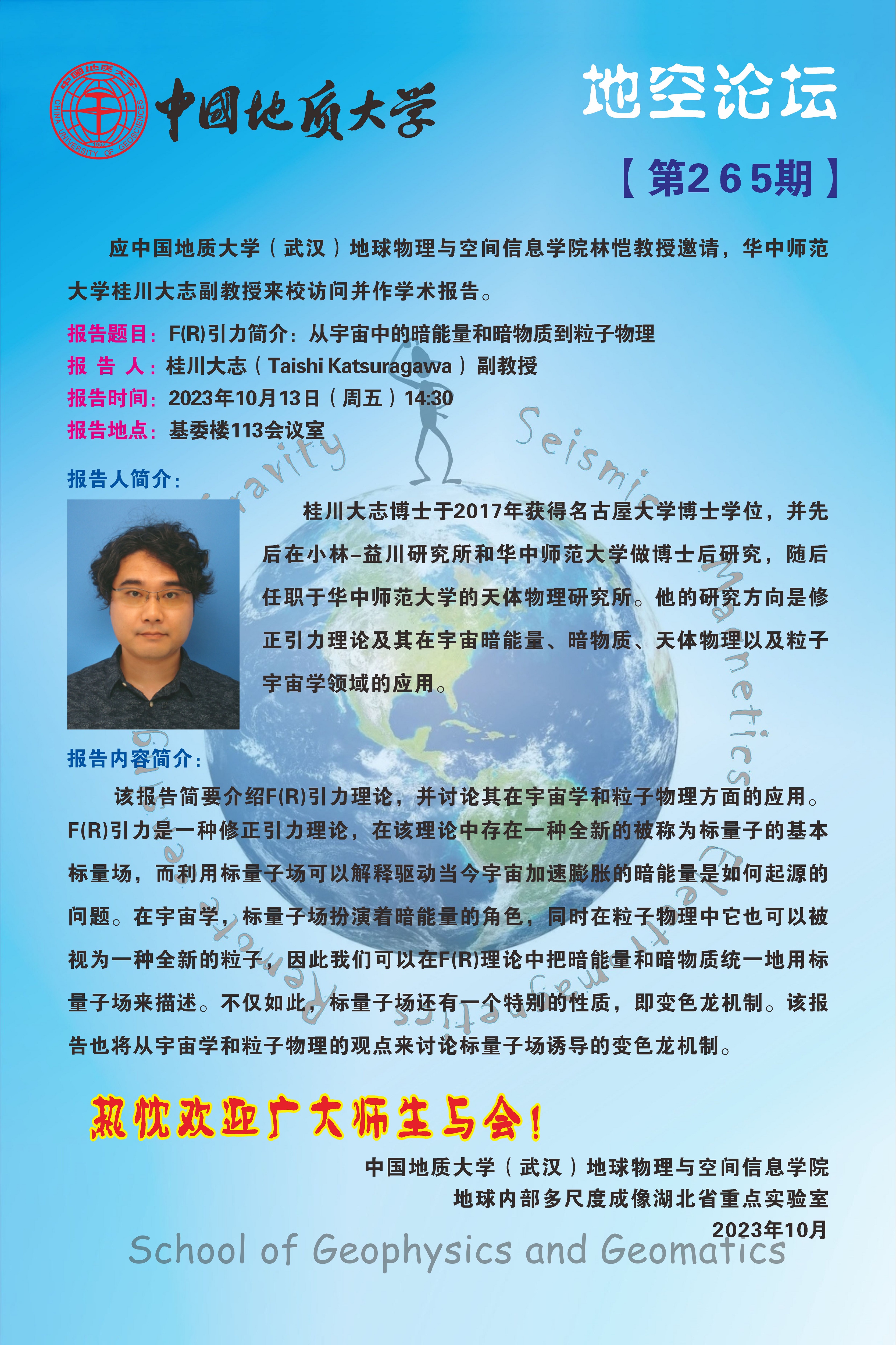 【10月13日】地空論壇:F(R)引力簡介:從宇宙中的暗能量和暗物質到粒子物理