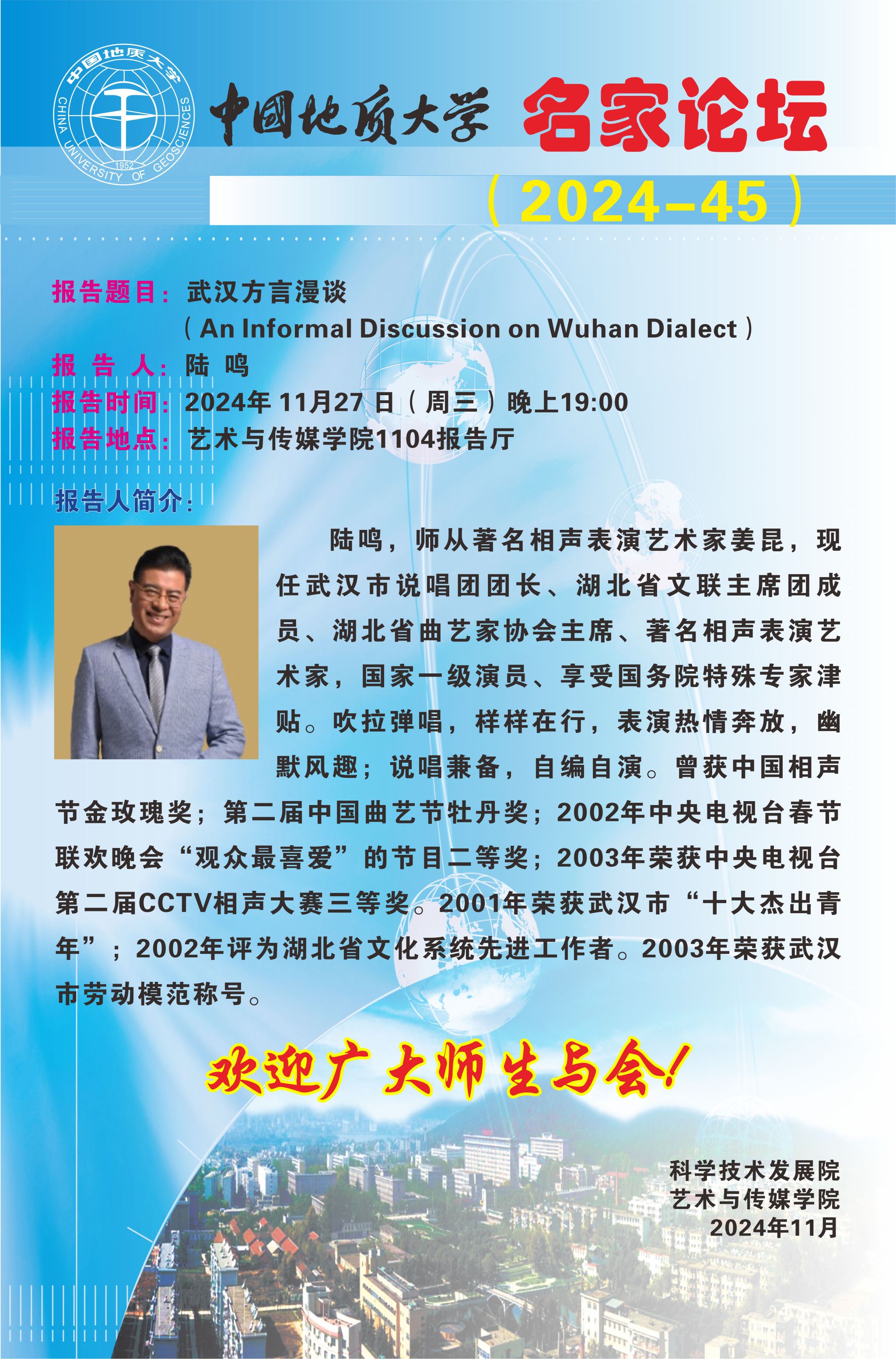 【11月27日】藝媒名家講壇:湖北省曲藝家協會主席陸鳴藝術家學術報告
