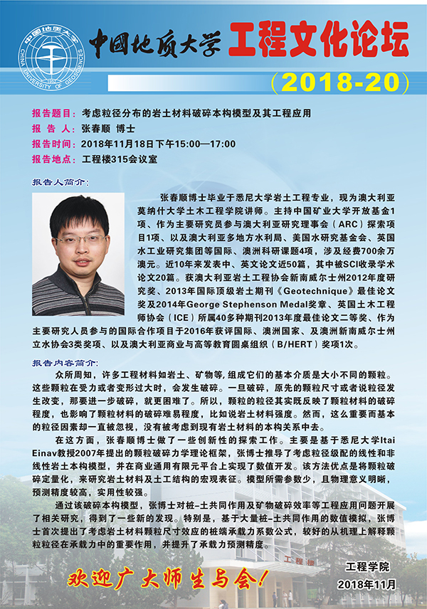 [11月18日]工程文化論壇:澳大利亞莫納什大學張春順博士學術報告
