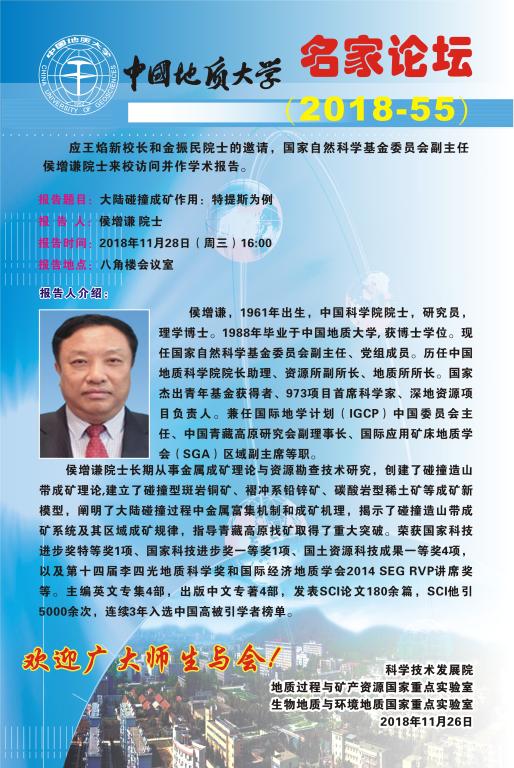 [11月28日]名家論壇:國家自然科學基金委員會副主任侯增謙院士學術報告
